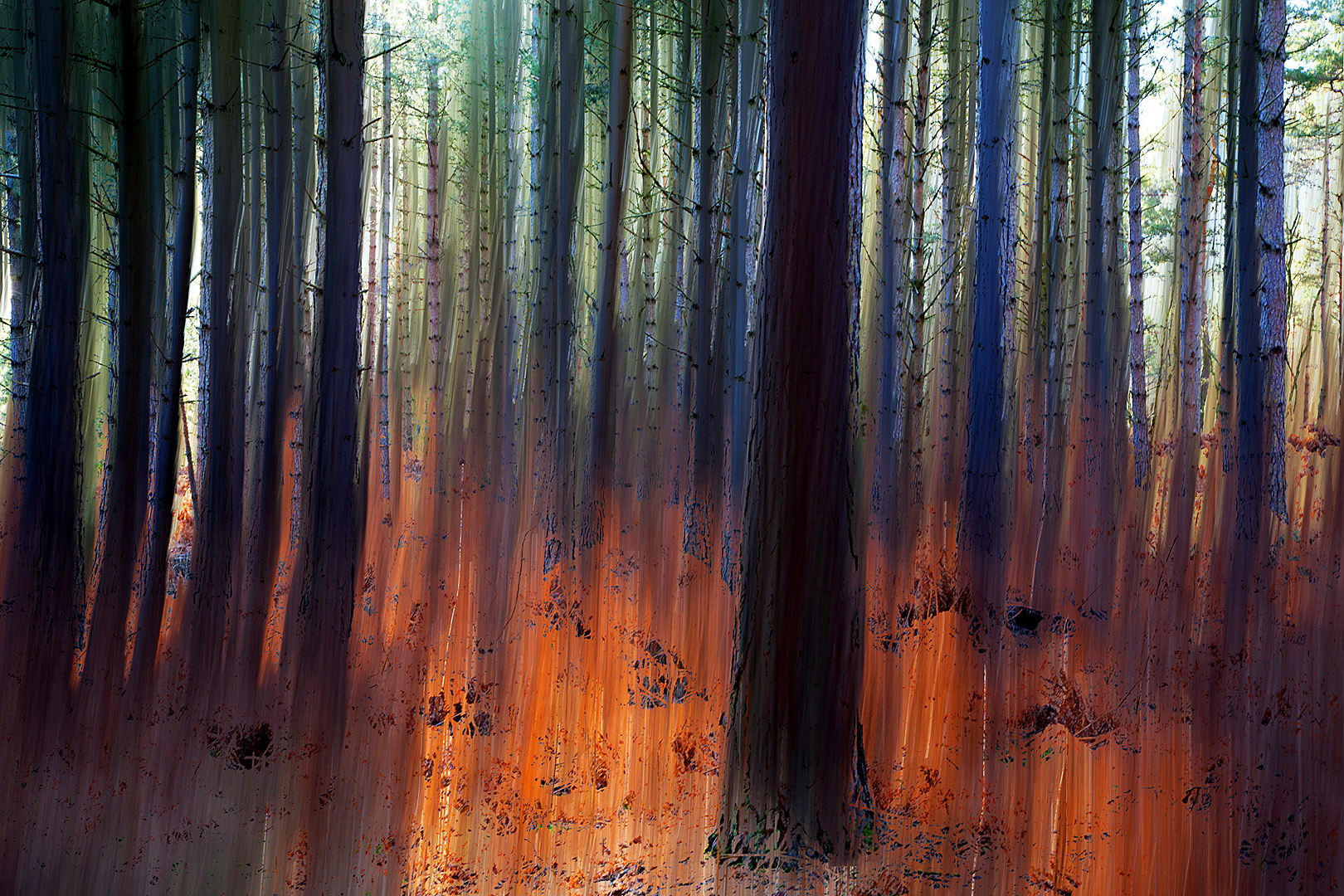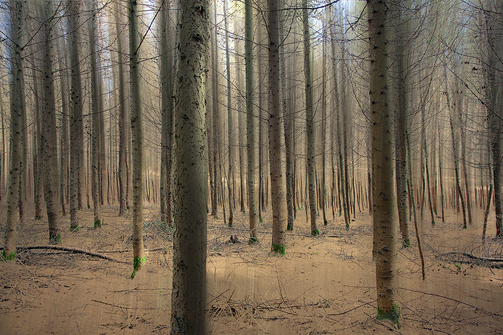 His most recent body of work, 'Treescapes', is a coming together of 20 years of experimentation both technically and aesthetically. He has chosen as a subject the forests and woods that he enjoys walking in every day. Nick identified that the trees and life around him was nearly impossible to capture within a static frame so began recording scenes over a longer period of time. He also had the intention to make his photographs look like paintings and this is exactly what his series resembles. When you walk through a forest birds flit across your vision, the trees blur and there is movement on even the stillest day. This body of work portrays the subject in a new and interesting way that much more closely resembles the emotion of being in nature than any static frame.
