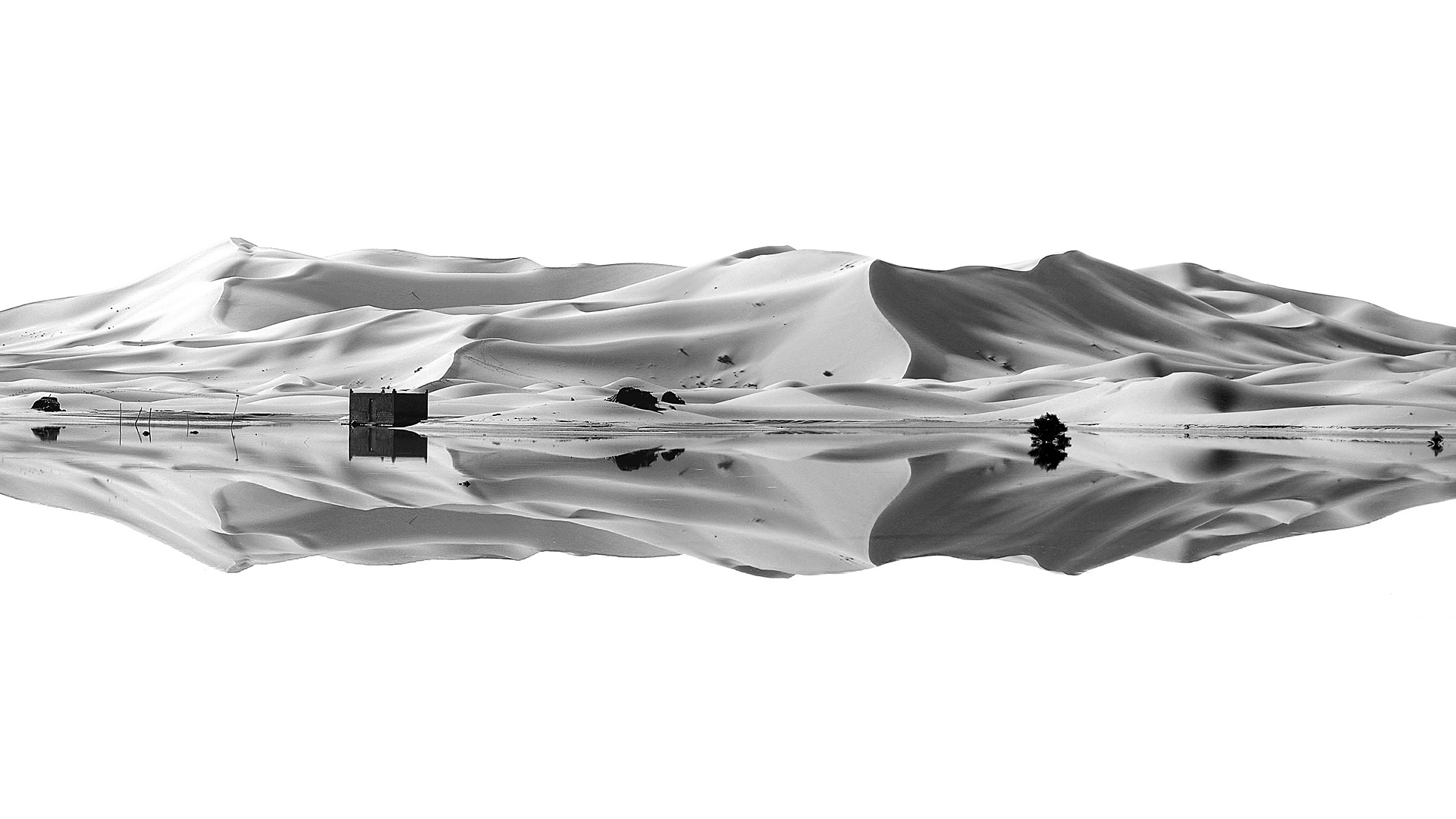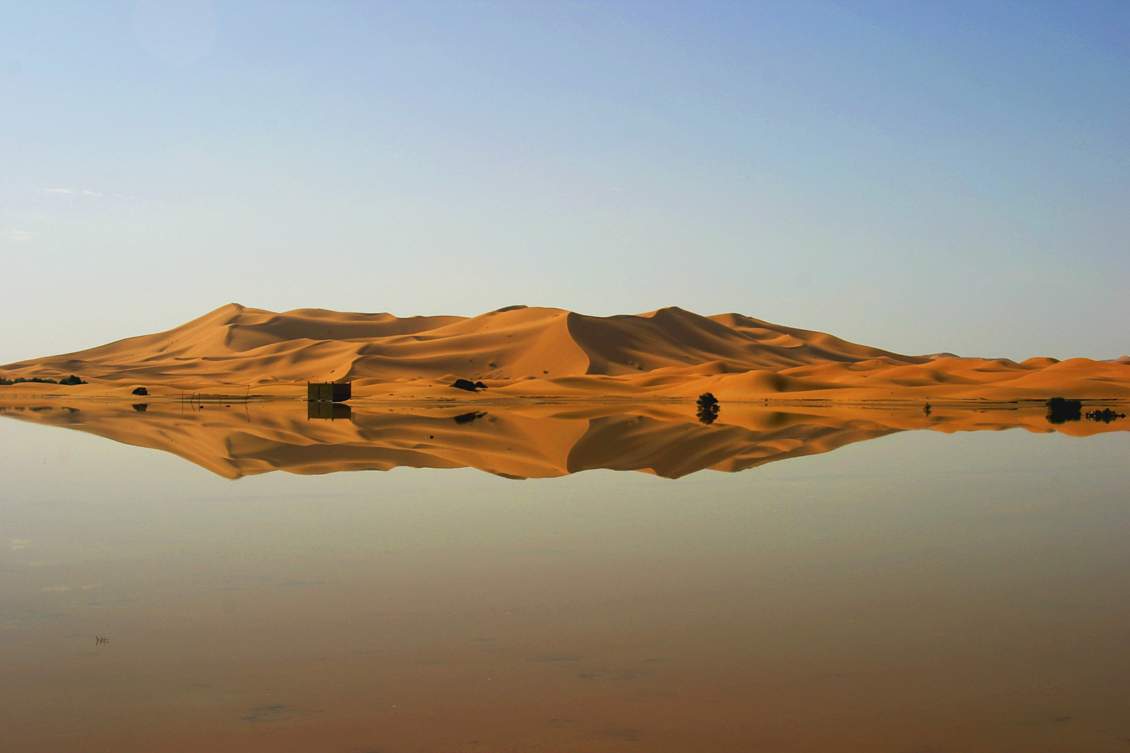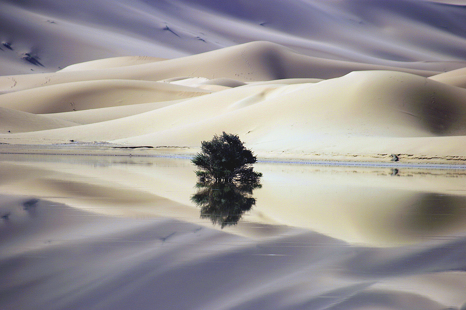sand dunes reflected in an oasis - morocco