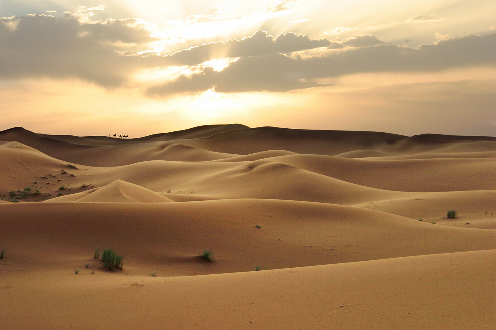 sunset over camel train - morocco
